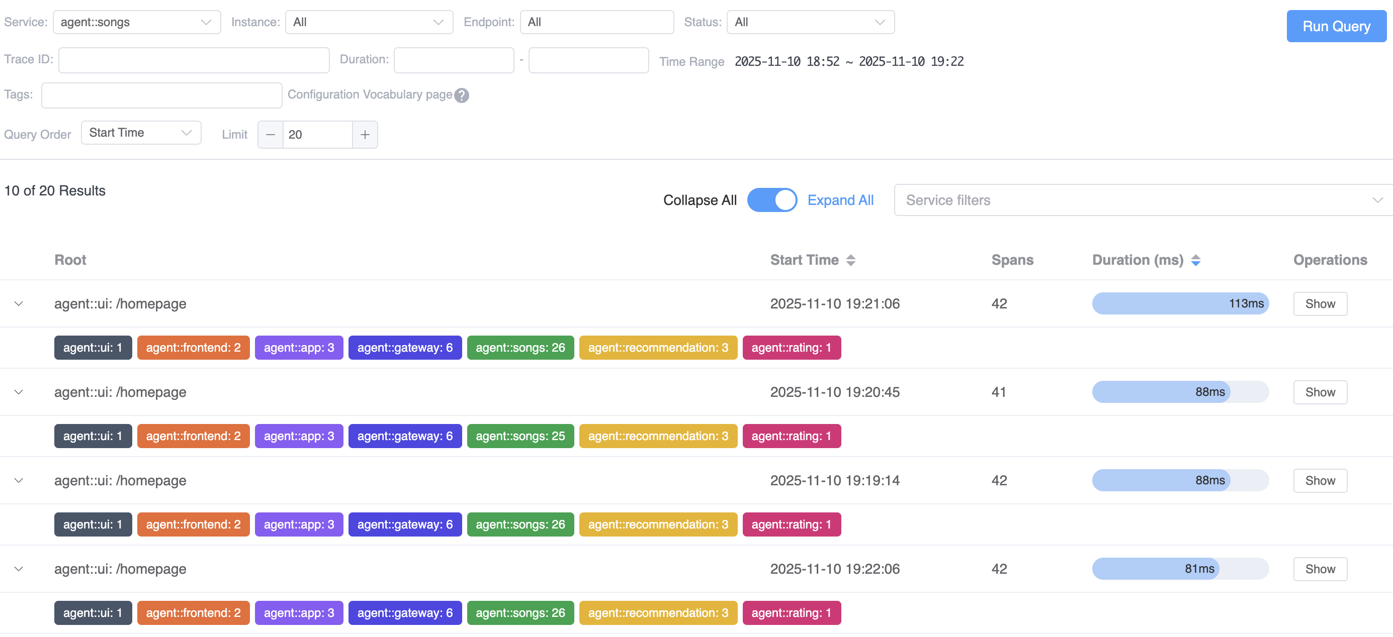 service layeroptional. - GraphQL API: metadata, topology, log and trace support query by name.