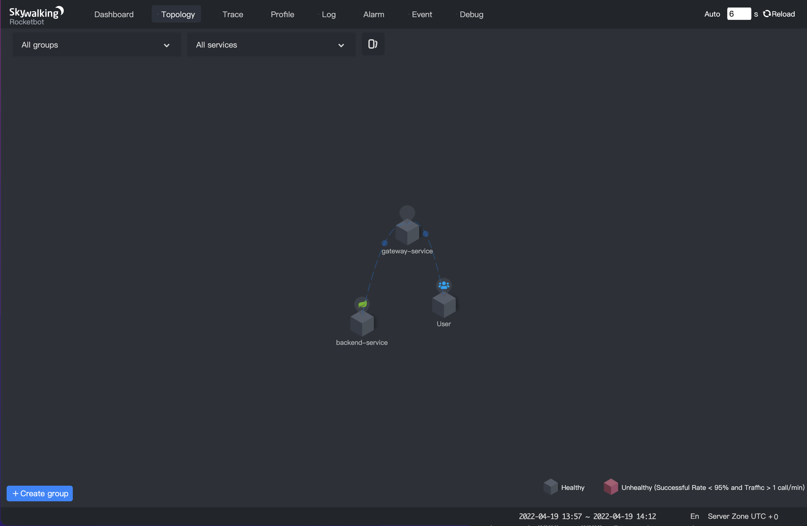 - 所有服务的拓扑图如下所示。